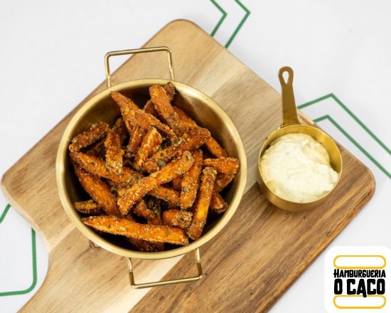 Cebola frita, tomate seco, queijo, alface roxa e maionese de orégano.